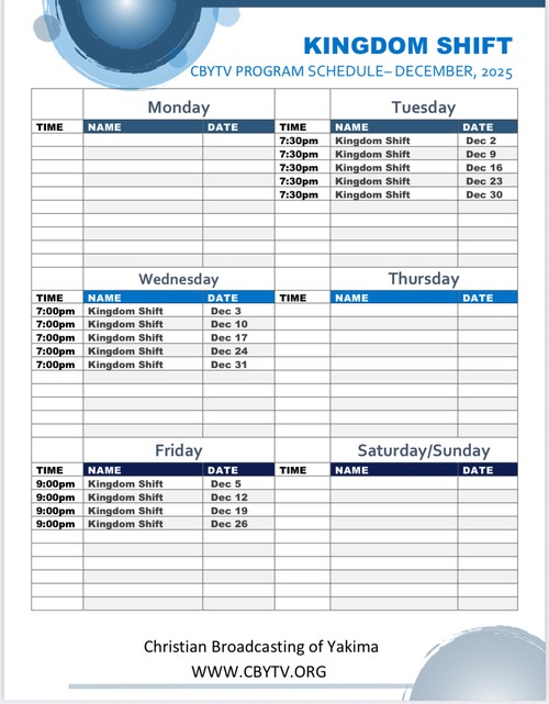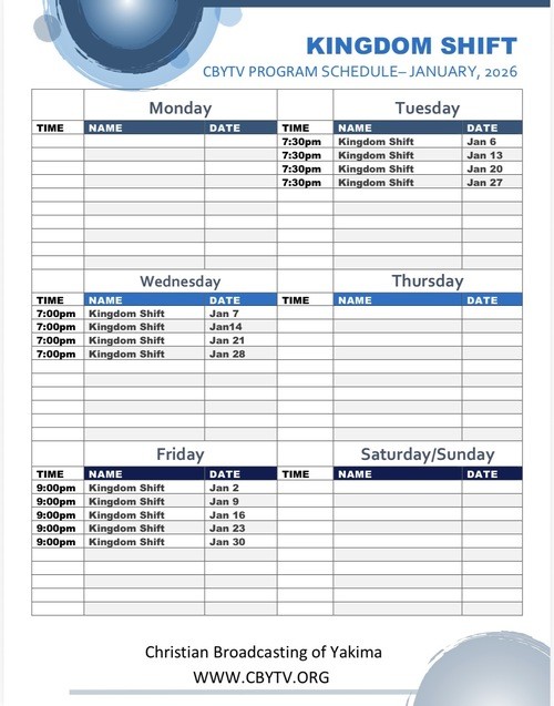 We're excited to share Pastor Andy has started a new series on Christian Broadcasting of Yakima (CBYTV) called Kingdom Shift! During this series, we'll be exploring the Bible, looking at different themes, and talking about the Kingdom of God.